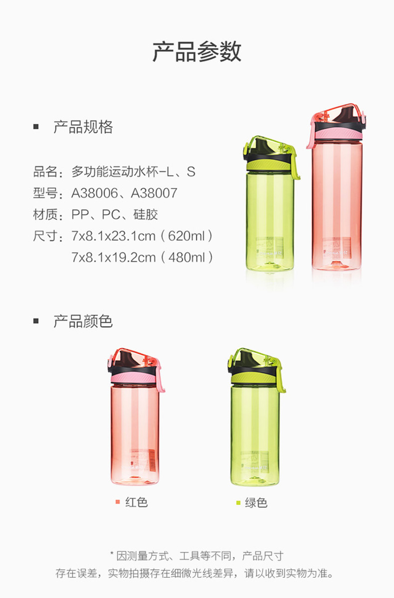茶花620ML多功能运动水杯-L